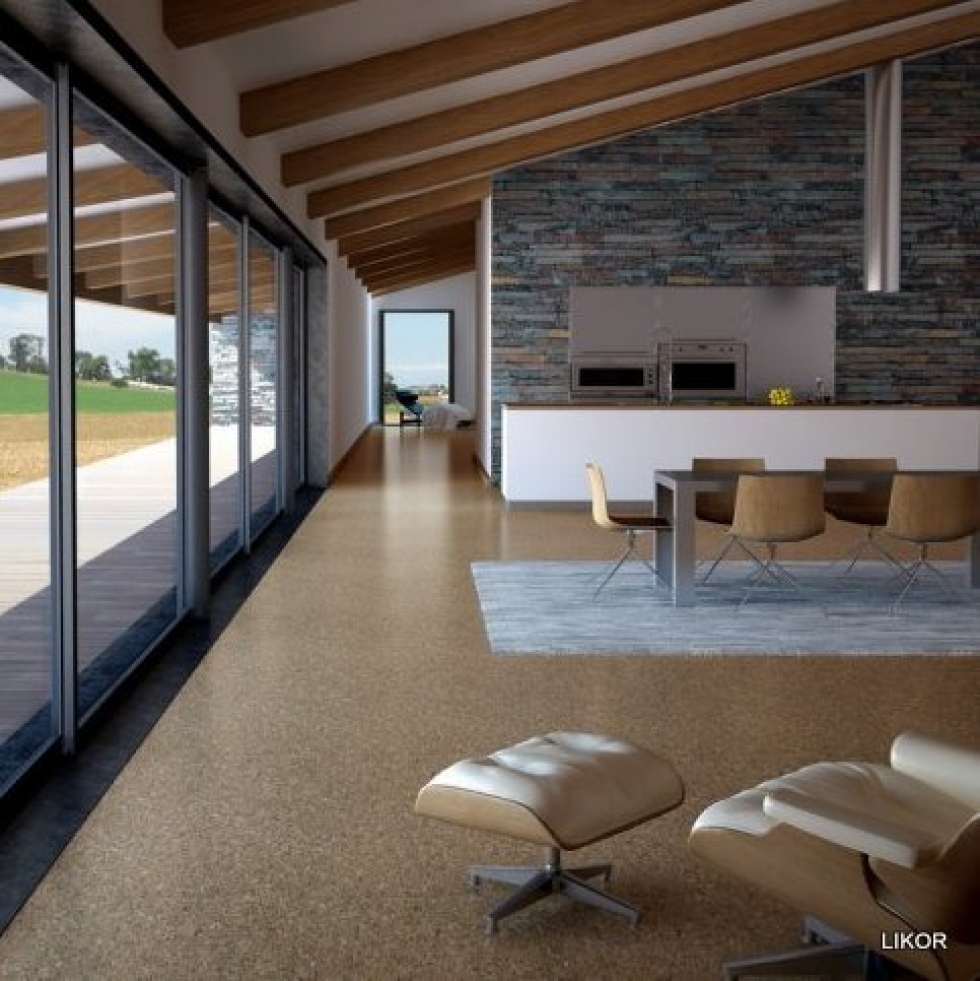 Korkové podlahy se vyrábějí z kůry stromu Dubu korkového. Pás lesa těchto stromů začíná u Atlantiku v Portugalsku jižně od Lisabonu a táhne se dále přes jižní Španělsko, Francii a Itálii převážně v blízkých oblastech Středozemního moře a na jeho ostrovech Sardinie a Korsika. Z aftrické části se vyskytuje zvláště v Alžírsku a Maroku. Získává se loupáním kůry z těchto stromů v letních měsících. Korkové podlahy jsou velmi teple, pružné, tiché a v kombinaci s kvalitním lakem vysoce odolné. Uplatňují se převážně všude v domáctnosti, ale i nízko zátěžových komerčních prostorách – butiky, banky, kanceláře.